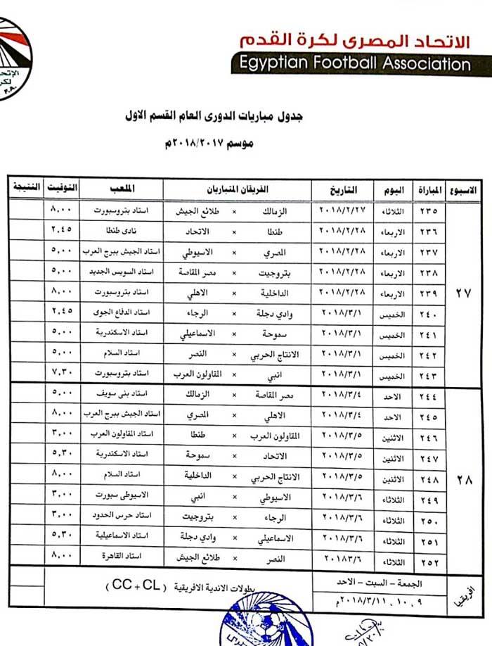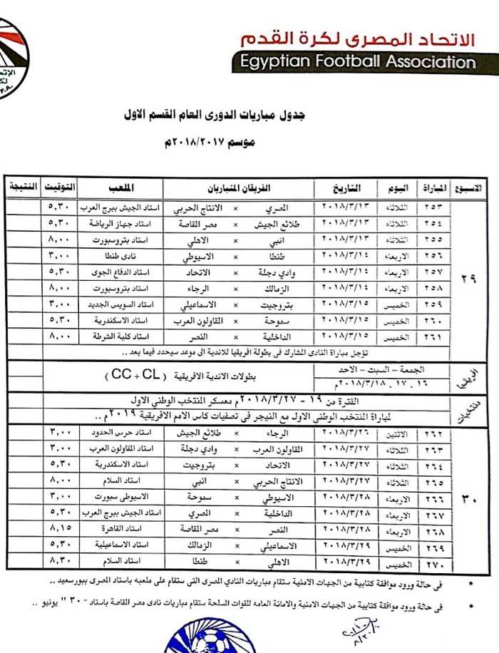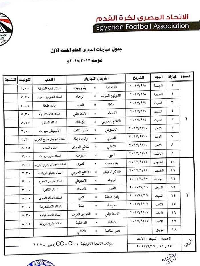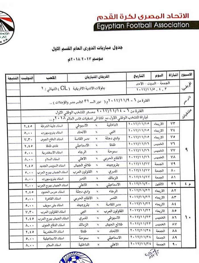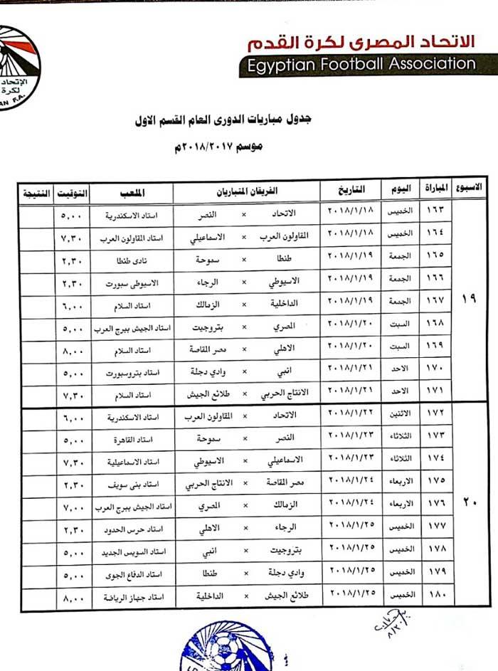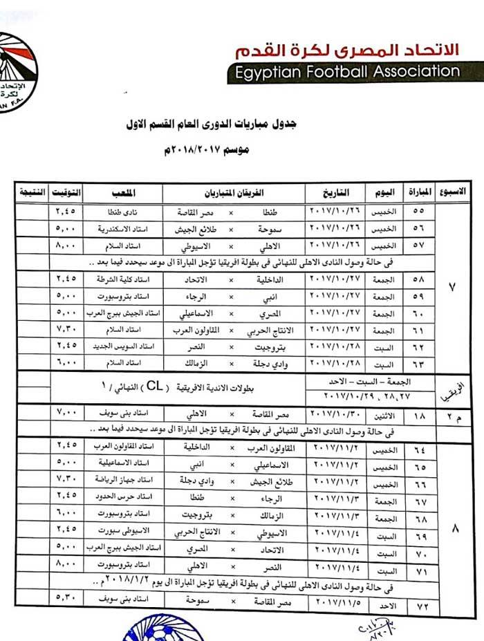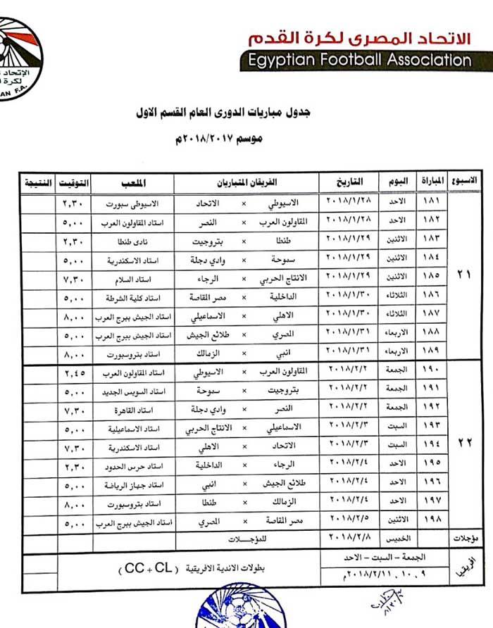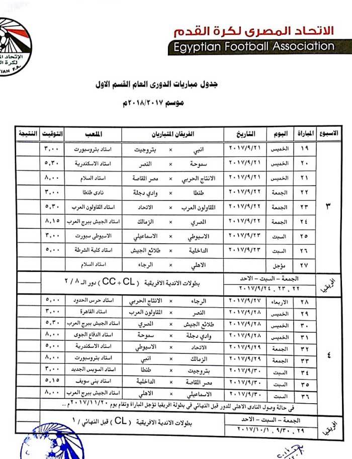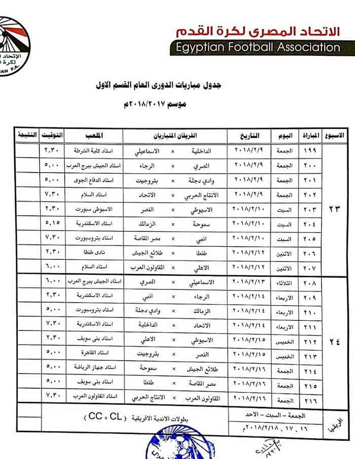 ولم يحدد الجدول مواعيد المؤجلات الخاصة بالأهلي لحين حسم موقفه بدوري أبطال أفريقيا، وربما يكون أقرب وقت كأس العالم الأندية في حالة عدم التأهل.
