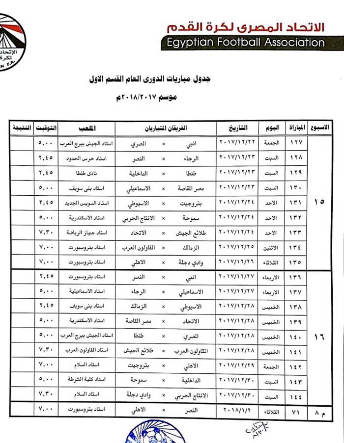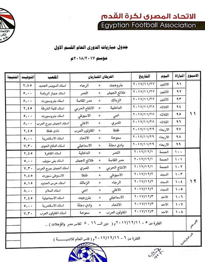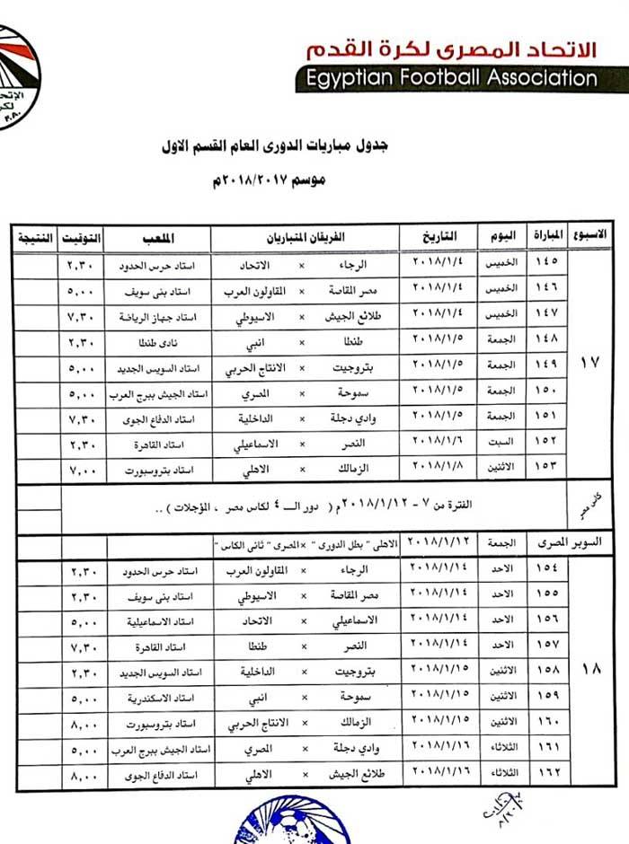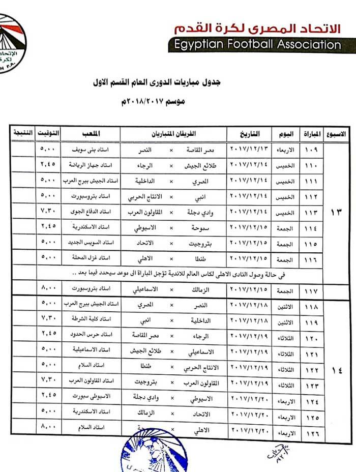 وتقرر أن يقام كأس السوبر بين الأهلي والمصري البورسعيدي في 12 يناير المقبل دون أن يحدد مكان المباراة.