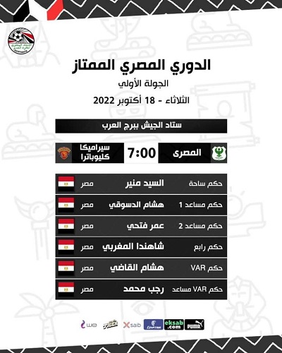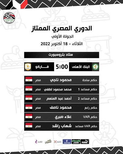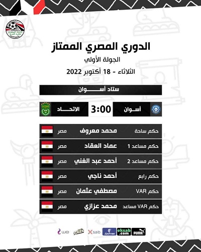 أعلن الاتحاد المصري لكرة القدم عن حكام مباريات الأسبوع الأول في الدوري الممتاز والمقرر إنطلاقها الثلاثاء.